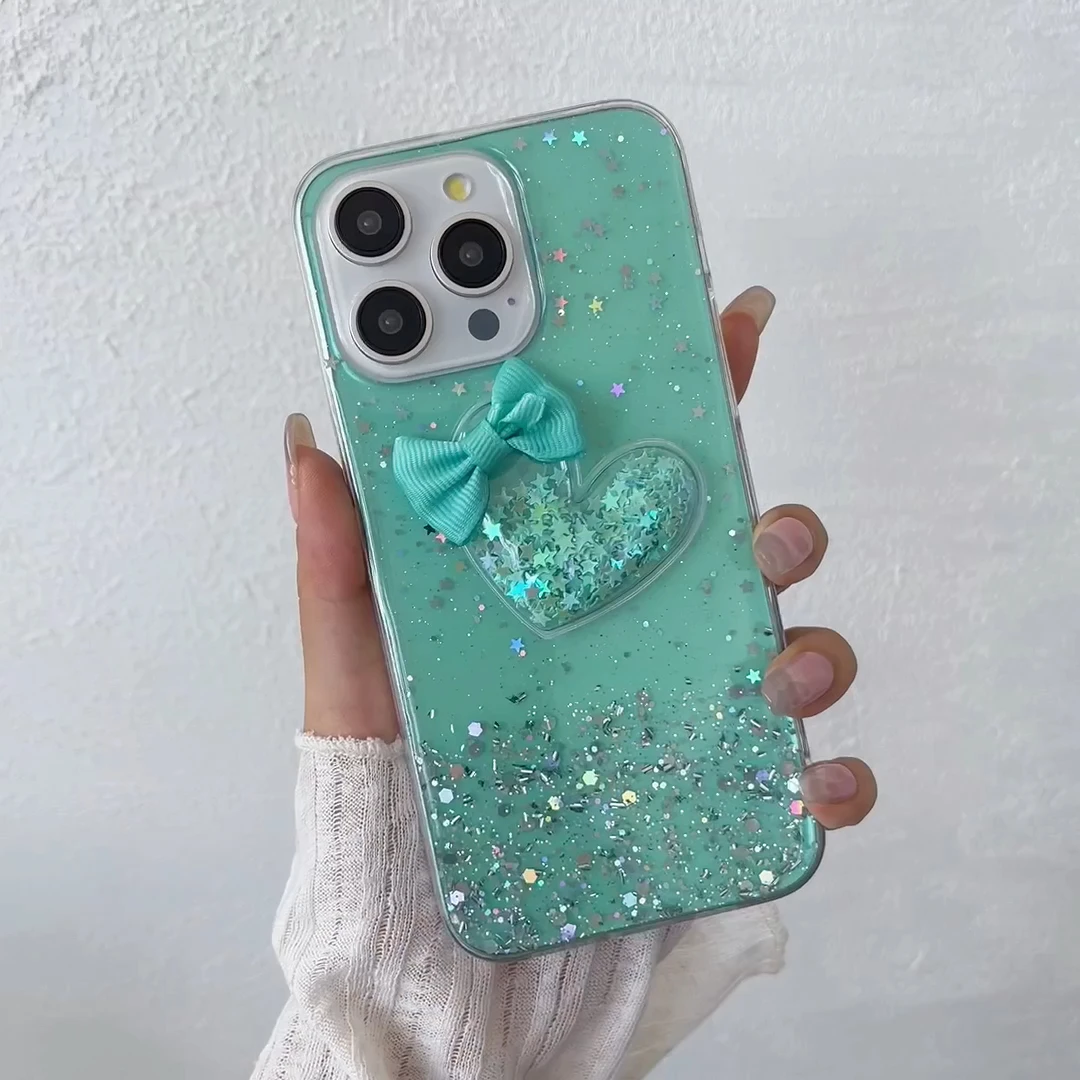 Luxury Cute Bling Glitter Phone Case For iPhone 17 16 15 14 13 12 11 Pro Max Plus Ultra-thin Quicksand Heart-shaped Back Cover