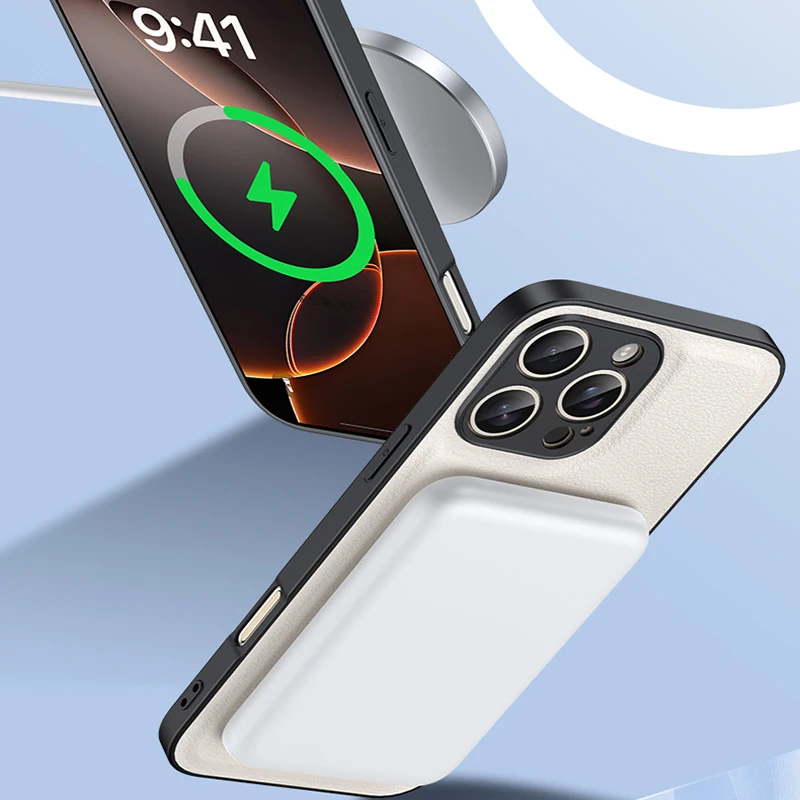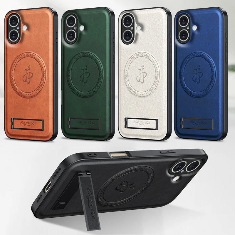 Luxury Magnetic Wireless Charging Leather Holder Phone Case For iPhone 17 16 15 14 13 12 Pro Max Folding Stand Silicone Cover