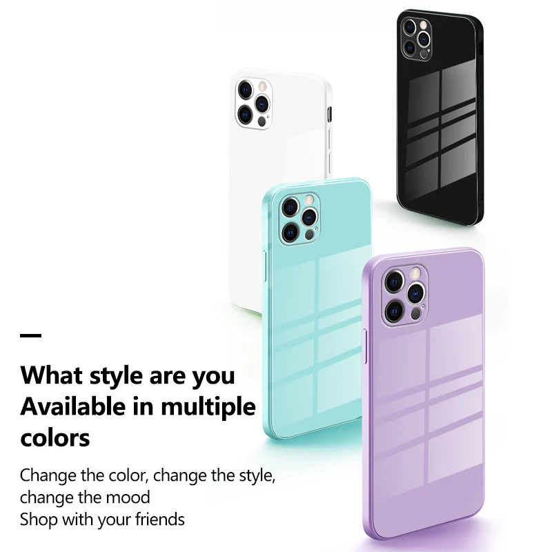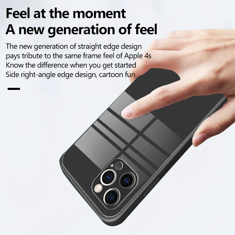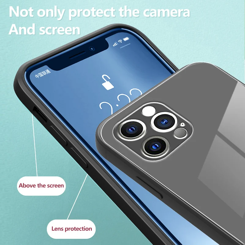 Luxury Square Liquid Tempered Glass Phone Case For iPhone 17 16 15 14 13 12 11 Pro Max Plus Ultra-thin Lanyard Silicone Cover