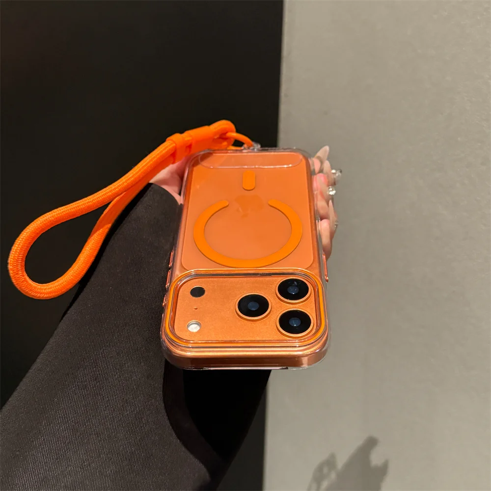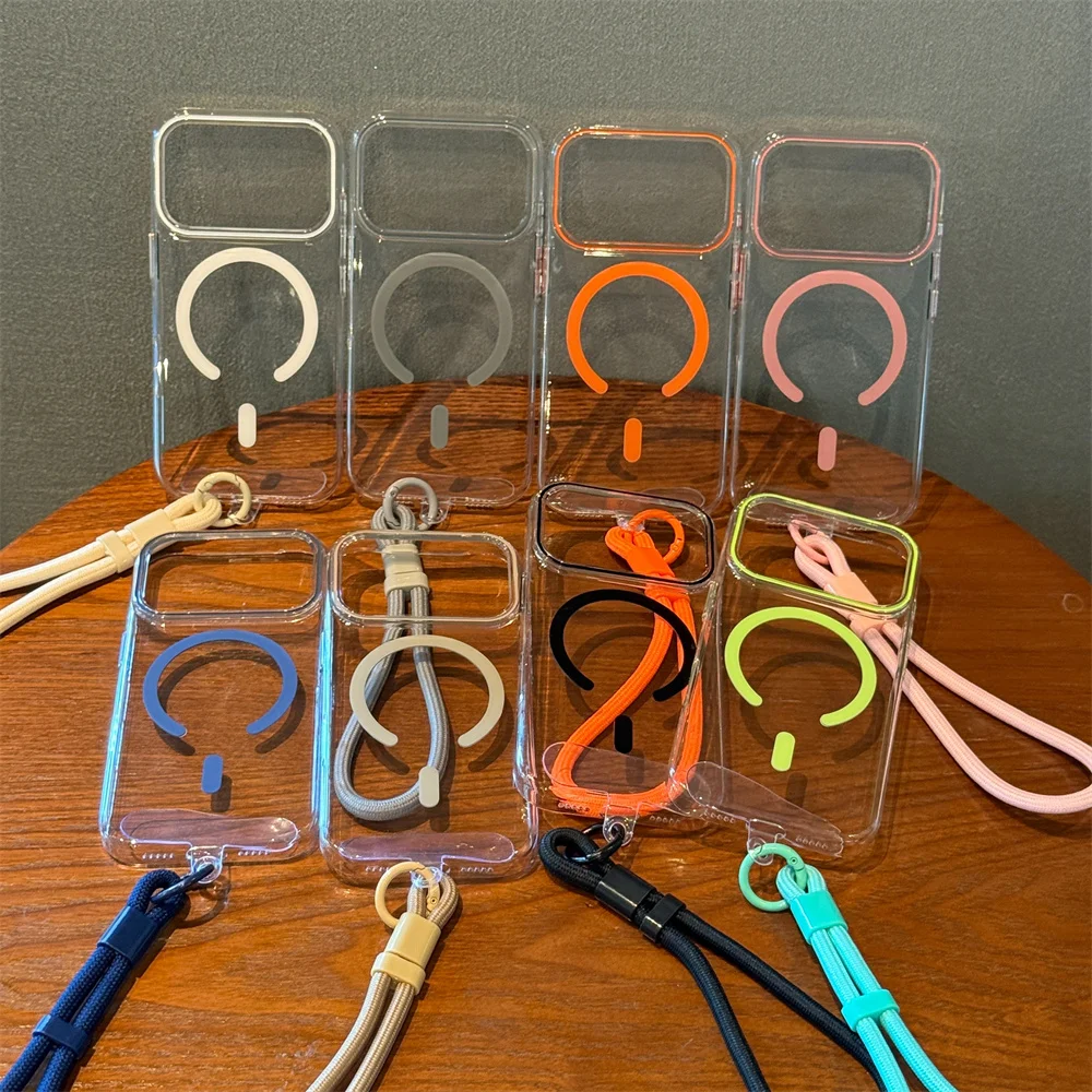 Ultra Thin Transparent Magnetic Wrist Strap Case For iPhone 14 15 16 17 Pro Max 17Air PC Acrylic Mixed Armor for Magsafe Cover
